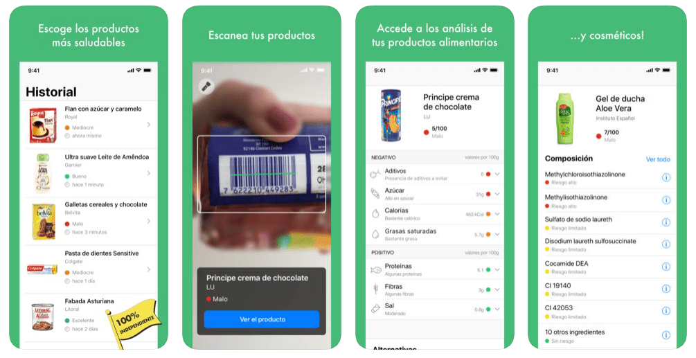 Una aplicación gratuita que permite evaluar el impacto en la salud que tienen los productos alimentarios y cosméticos. Cada producto alimentario se evalúa de acuerdo con 3 criterios objetivos: calidad nutricional, presencia de aditivos y dimensión biológica del producto.